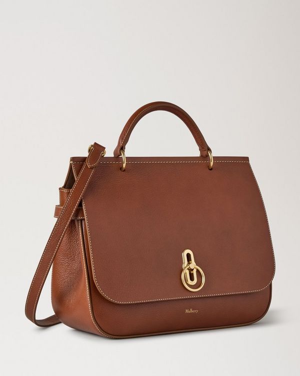 A soft cow leather with a small printed grain effect. The leather is lightly finished to protect the grain surface. A large, top handle version of our Amberley style.
